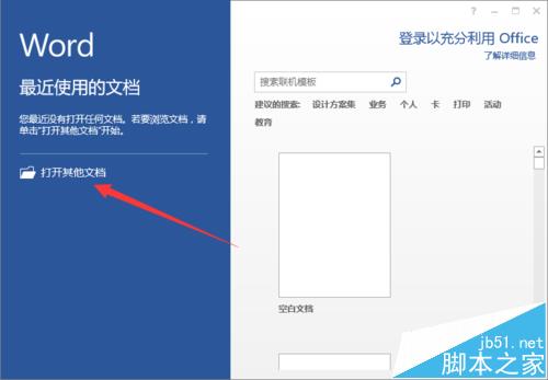 1、鼠标左键双击桌面的Word2013程序图标,将其打开运行,在打开的Word开始桌面,选择"打开其他文档"选项,打开需要编辑的Word文件。如图所示;