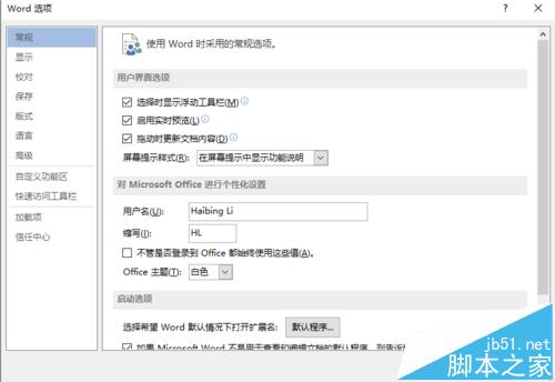 4、点击"选项"命令后,这个时候会打开"Word选项"对话窗口。如图所示;