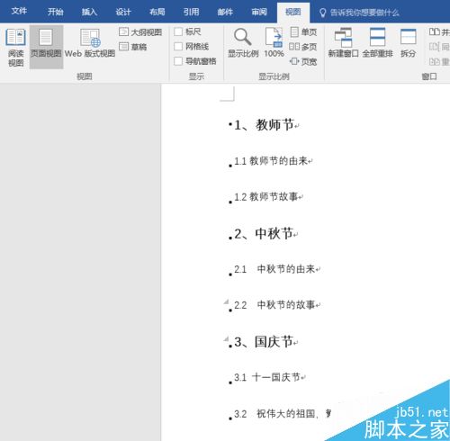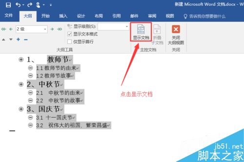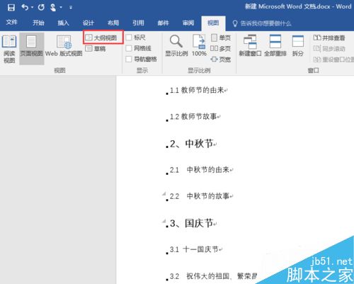 3、点击"大纲视图"