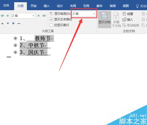 5、将显示级别选为"2级"