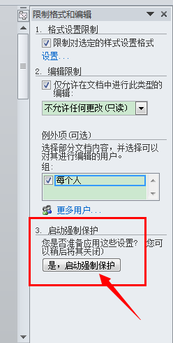 3、在"1 格式设置限制"中的"限制选定的样式设置格式"处勾选上