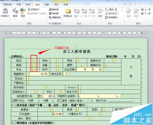 1、首先打开你要进行设置的文档,将文档中希望留给读者编辑或者填写的部分统统进行选中
