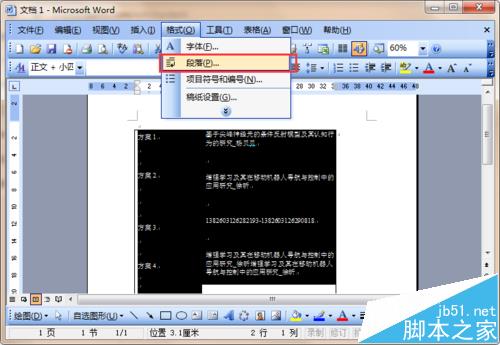 1、找到命令:点击菜单栏中的"格式",在下拉菜单中选中"段落";
