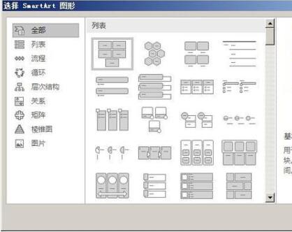 3、进入选择SmartArt图形页面中;