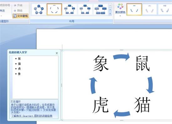 SmartArt是什么?SmartArt是Microsoft Office 2007中新加入的特性,用户可在PowerPoint,Word,Excel中使用该特性创建各种图形图表。SmartArt 图形是信息和观点的视觉表示形式。可以通过从多种不同布局中进行选择来创建 SmartArt 图形,从而快速、轻松、有效地传达信息。