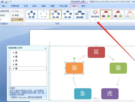 7、在"更改颜色"栏目里,我们可以更换图形的样式,使得制作的作品更为美观。