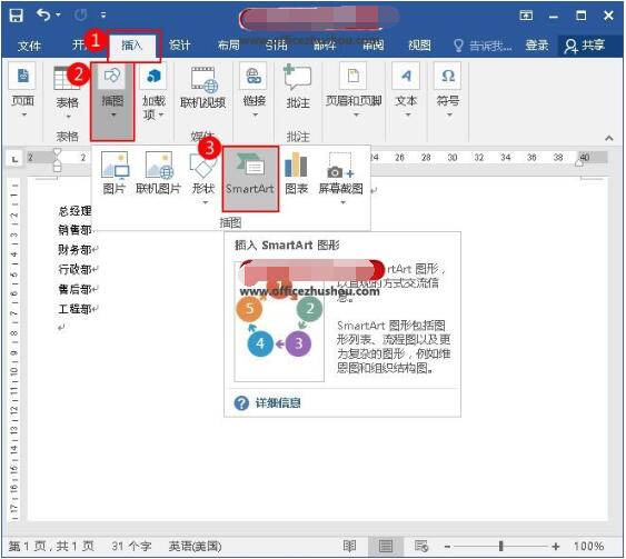 Word用SmartArt如何制作组织结构图