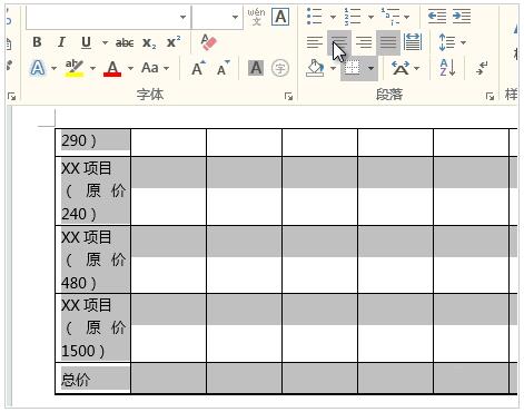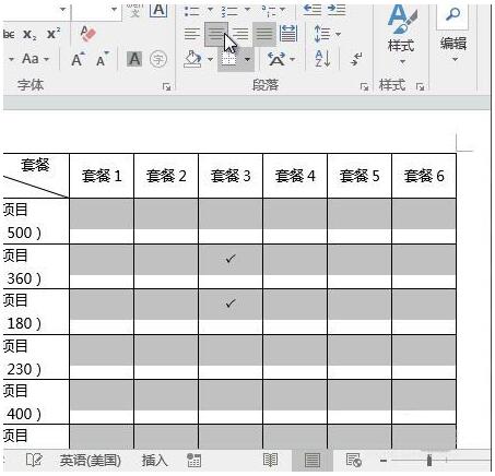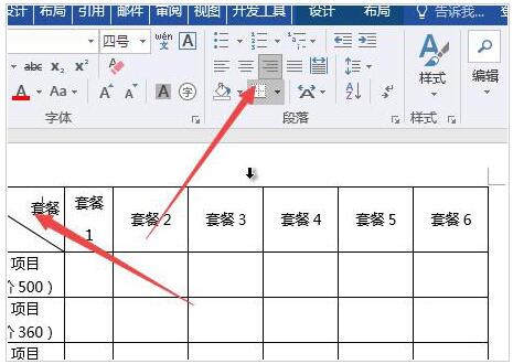 12、将项目设置为左对齐,将套餐设置成右对齐,点击 段落——左对齐;点击 段落——右对齐。注意:如果太靠边了,可以加几个空格,也可以删减空格