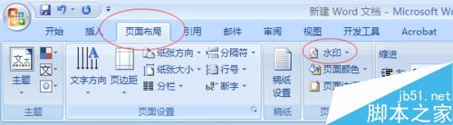 2、点击页面最顶端的工具栏选项,这时候会出现水印的一个选项。(PS 小编用的word2007版本)