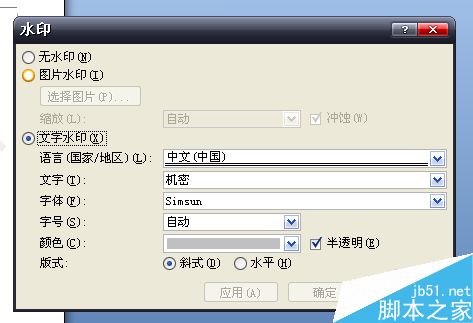 6、水印的颜色不一定要是灰色的,我们也可以自定义字体的颜色包括字体或者垂直/水平。