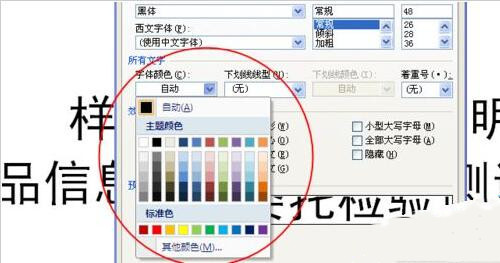 3、文字颜色选择:右键字体设置中单击字体颜色的下拉按钮进行选择。