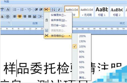 5、字符缩放的设置:改变字符的宽高比例,对其进行拉长或压扁,宽高比用百分数来标示,默认100%。