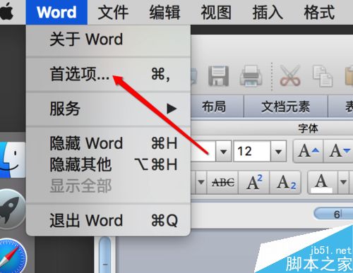 3、点击新出现的窗口的"首选项"一项;
