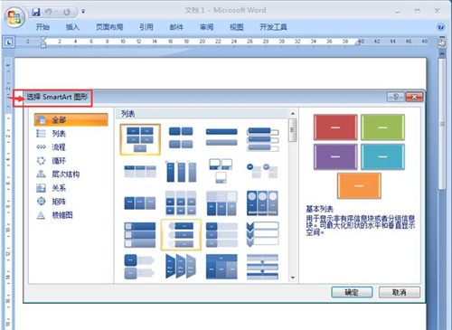 4、进入到选择SmartArt图形对话框中;