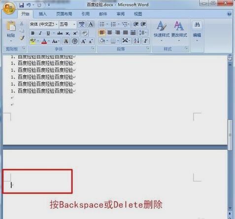 第二种,把鼠标光标定在空白页的上一页,然后用键盘上的"shift"键选中拖到最后一页空白页,然后鼠标左键点击空白,然后敲击键盘上的"Delete"即可。