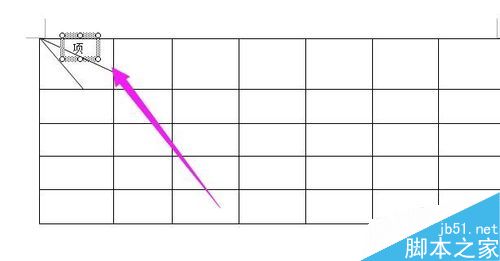 5、然后,光标点住其中一个"项"字的文本框,往表头里拖移,移到设定好的位置,如图中所示。