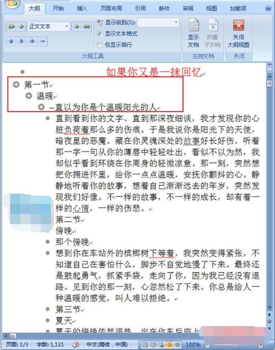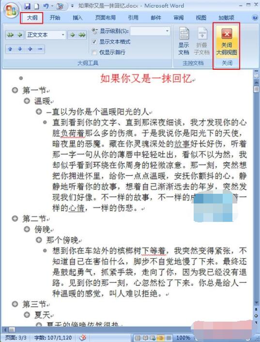 4.设置完毕后,在"大纲"选项卡区域单击"关闭大纲视图"选项组,将其关闭;