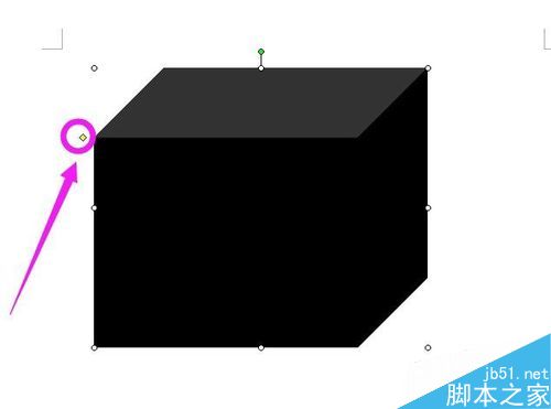 立方体的四周有控制点,在左上方有一个黄色的控制点。光标点住控制点不放手,拉动控制点,调节立方体的大小;