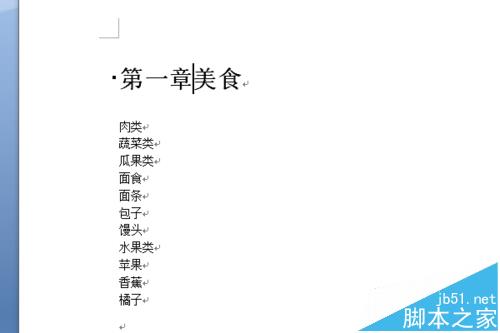 3、这样美食就加上了列表样式,前面出现了第一章三个字。