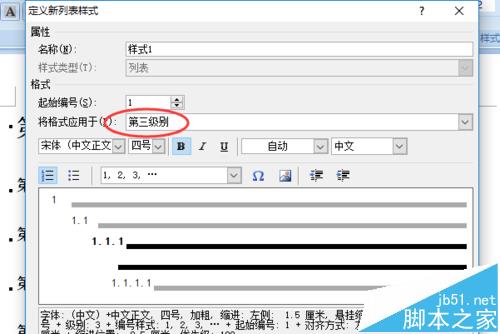 10、打开"定义新的列表样式",选择第3级别,然后设置相应的样式。