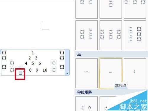 6、选择第四行中间一格,矩阵列表中选择"1×2空矩阵",在选择新增加的两格,分别使用"1×2空矩阵",最终将此行变为六格。