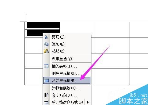 6、光标放在选中的单元格上,鼠标右键点下,弹出的菜单中点"合并单元格"。