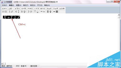 3、我这里也是简单的编辑了一个X+Y>=Z。编辑好之后将公式全部选定,Ctrl+c进行复制,复制好了就可以关闭这个公式编辑窗口了