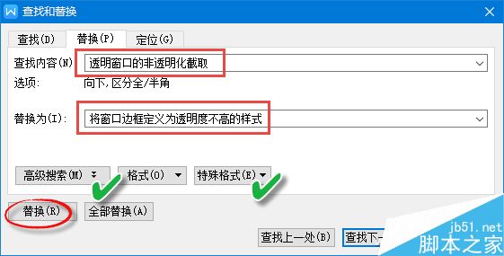 按下Ctrl+H组合键,输入查找内容和替换为的内容,执行替换即可。同样也可以构造高级或特殊格式的查询和替换条件。