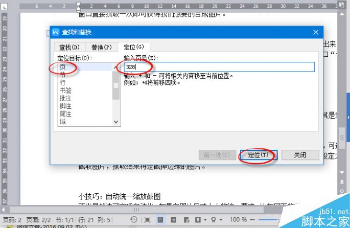 那么,要跳转到某一页、某一行或某个书签怎么办呢?好说!只需按下Ctrl+G组合键,按什么类型定位目标,就任你选了。点击类型,输入数字或关键字,点击"定位"即可。