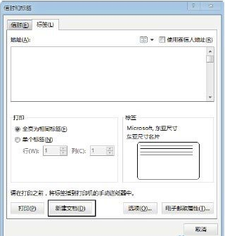 单击"信封和标签"对话框中的"新建文档"按钮关闭对话框,如图7所示。