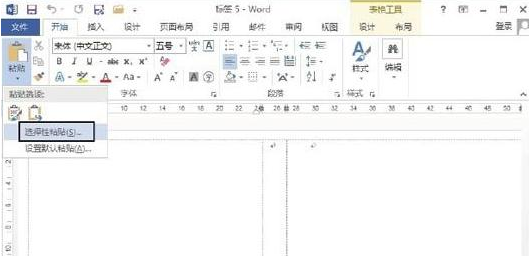 Word2013制作名片步骤7:此时Word 2013将创建一个新文档,并在新文档中根据设置的名片大小创建表格。选择创建的文本框,按"Ctrl+C"键复制文本框。然后切换到创建的标签文档,在"开始"选项卡的"剪贴板"组中单击"粘贴"按钮上的下三角按钮,在打开的列表中选择"选择性粘贴"选项,如图8所示。