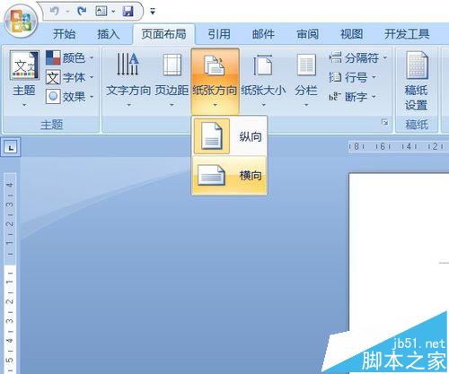 1、因为是整张纸放置一个图表,所以,横向放置比较合适。页面布局中将纸张方向改为横向。