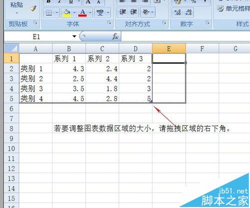 4、鼠标移至表格边线右下角,会有一个双向箭头,按住向右拖动至下一列,会自动添加一列:系列4。