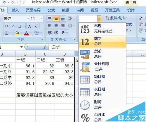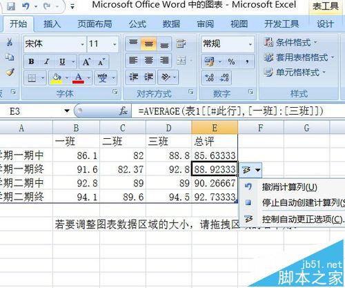 5、更改表格中的数据分别为班级与期中期末的数值。如图。