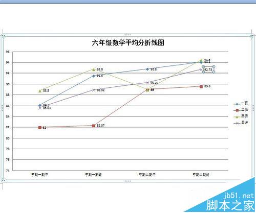 一个学年结束,各个年级、各个科的成绩会做一个汇总。这时候用图表的形式可以比较清楚、直观的看到整个学期不同班级之间的对比。这里是折线图的制作方法。