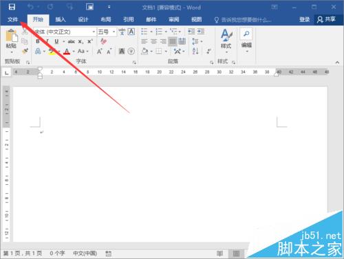 2、在打开的Word文档窗口中,点击左上角的"文件"命令选项。如图所示;