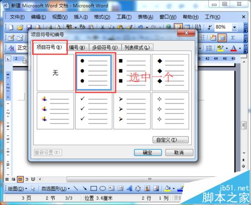 4、在新出来的一个界面选中"项目符号"选项卡。然后任意选中一个编号。