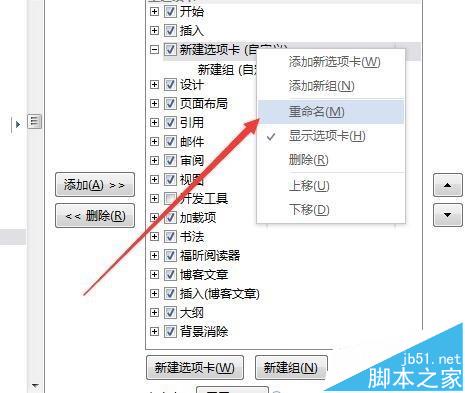 5、在新建选项卡上点击右键,在弹出菜单中选择"重命名"菜单项