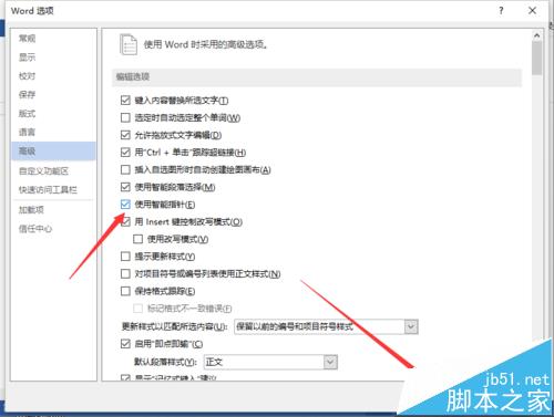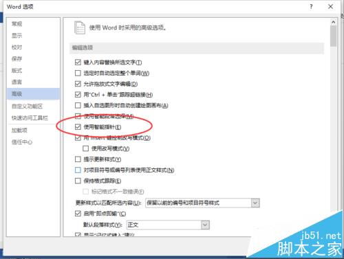 6、在"高级"选项卡的右侧窗格中,找到"使用智能指针"并将其勾选。而后点击"确定"即可。如图所示;