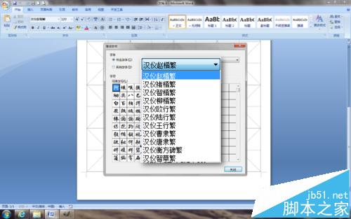 2、Word 随即打开书法字帖页面,并弹出"增减字条"对话框。下拉"书法字体"列表,可以看到 Word 内置了"汉仪赵楷繁"等 11 种书法字体。点击选择喜欢的字体种类。