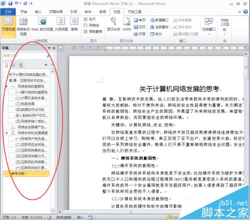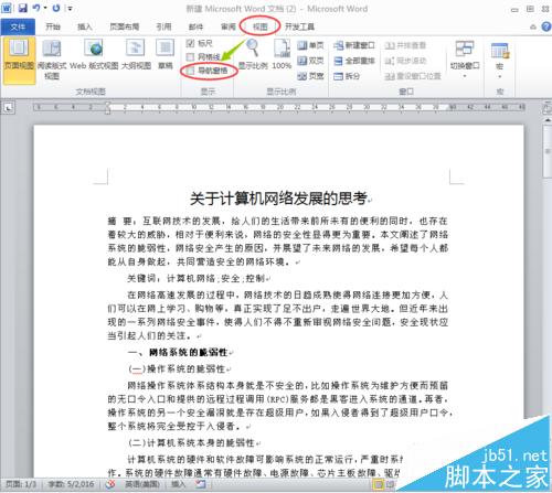 6、依次把文档里的标题做相应设置后,单击"视图",勾选"导航窗格"前的复选框