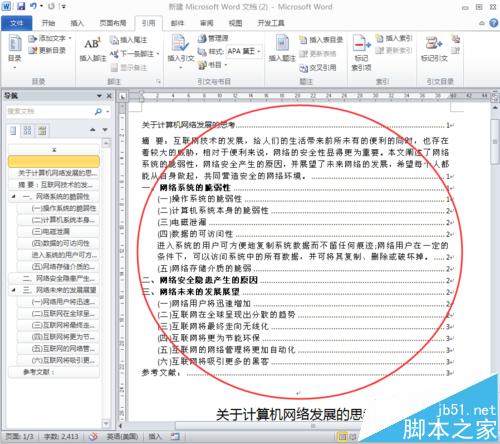 2、要处理此问题,就要知道该问题的成因,原因是第四小点的内容并没有以段落的形式存在,而是以正文的形式存在,现在,只要用格式刷把其他正常的段落的格式复制到第四小点的内容里,就可以看到"导航"里面已经显示正常了。