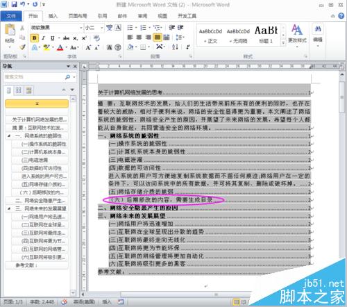 1、目录已经生成,但此时我们的文档需要发生变化,例如在第一大点的第五小点后要增加一个第六小点