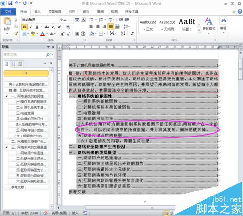1、如果大家仔细看目录,可以看到,目录里的"摘要",把后面文字都显示出来了,而且第一大点的第四小点,除了目录标题,也有部分内容被写到"目录"里了,这是为了给大家说明如何处理这个问题而一开始我就埋下的伏笔,现在以第四小点来讲解一下如何处理该问题。