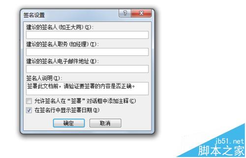 5、输入相关内容,点击"确定"按钮,此时会在word文档中多了一个签名框