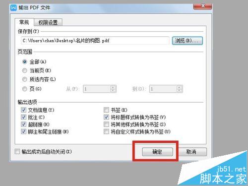 2、出现"输出PDF文件"其他不用选,直接按"确定",如图所示