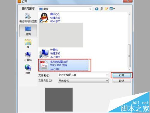 5、选择刚才在Word文档保存的PDF格式文件,如图所示,在选择"打开",如图所示