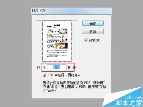 6、出现"打开PDF"对话框,红色框住的区域是Word文档的页数,1就是第1页,2就是第2页,然后一页一页打开在一页一页的保存,如图所示