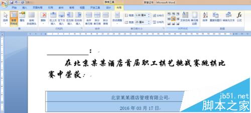 2、那么通过插入表格、隐藏边框的办法就可以实现签名栏和日期的完全居中对齐,而不受字符、字号的限制。