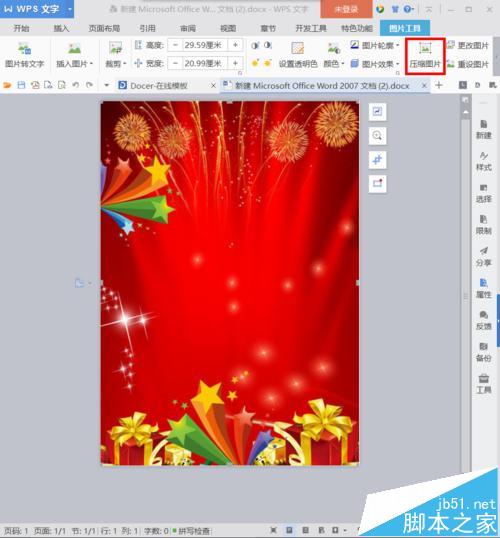 5、将图片复制粘贴到word中并双击图片,然后点击上面的压缩图片。